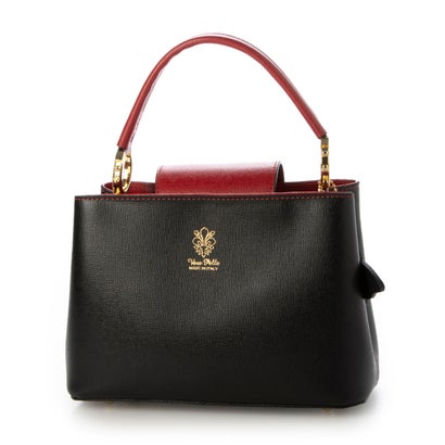 バイカラーデザインがコーディネートのワンポイントになるハンドバッグ。